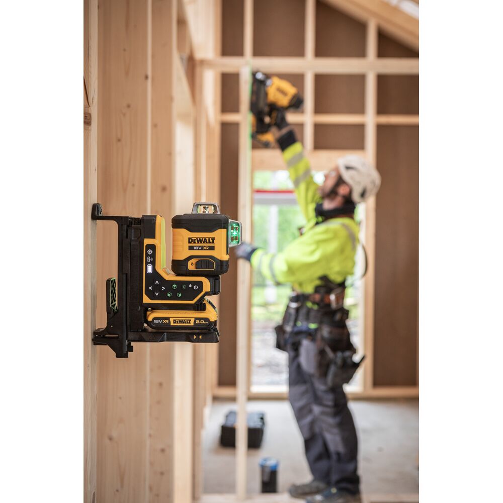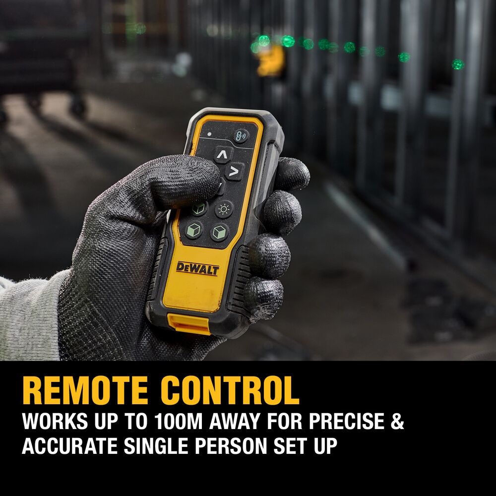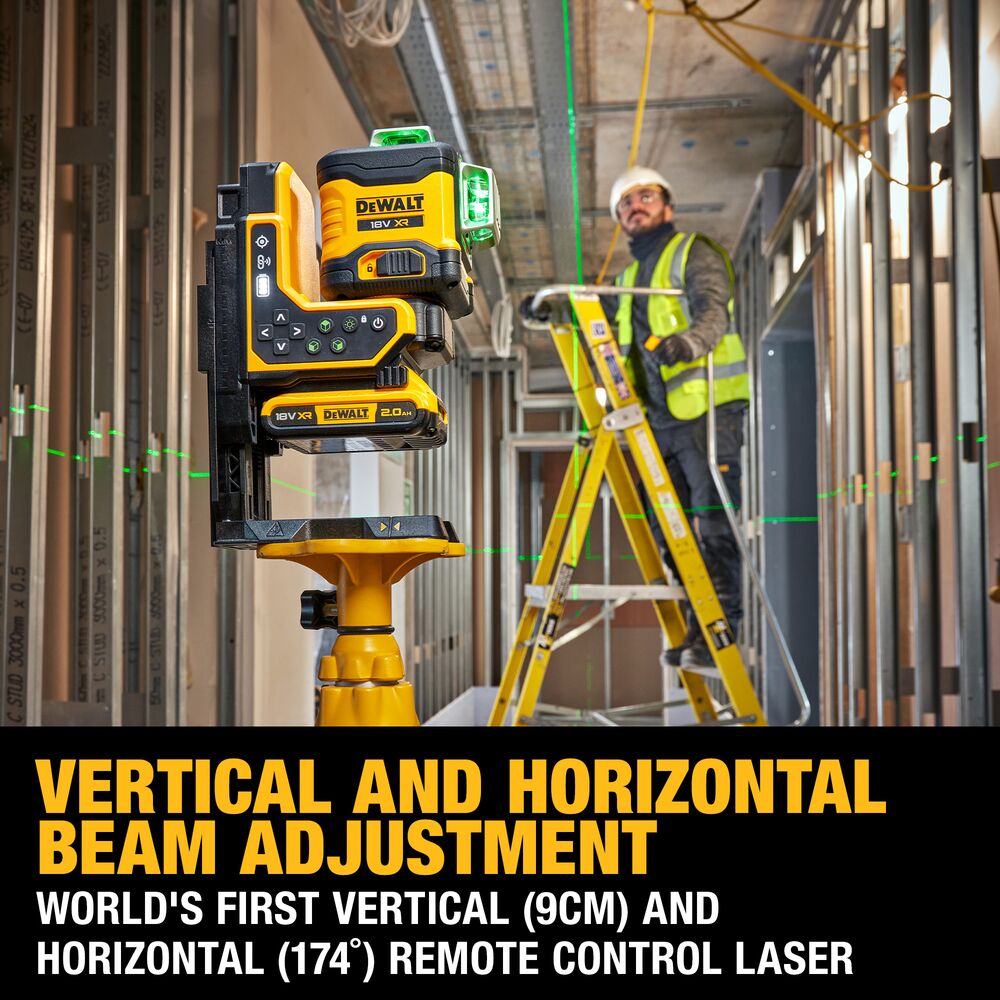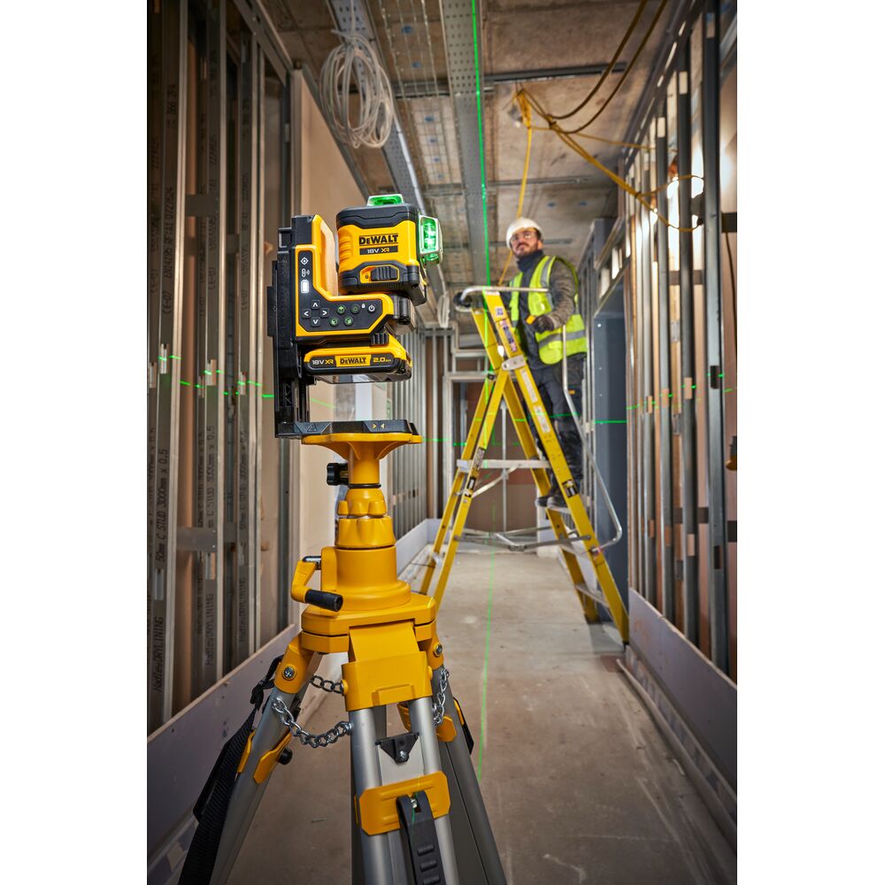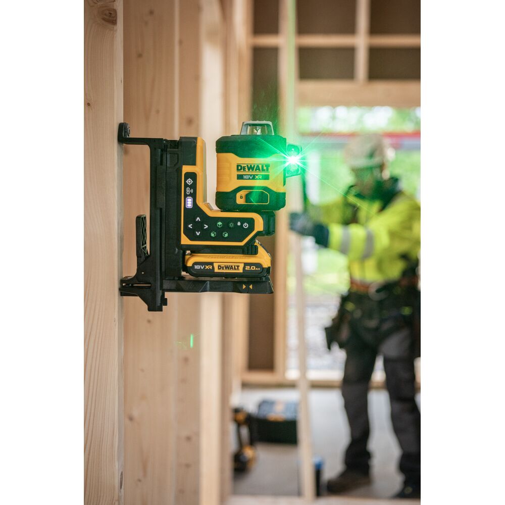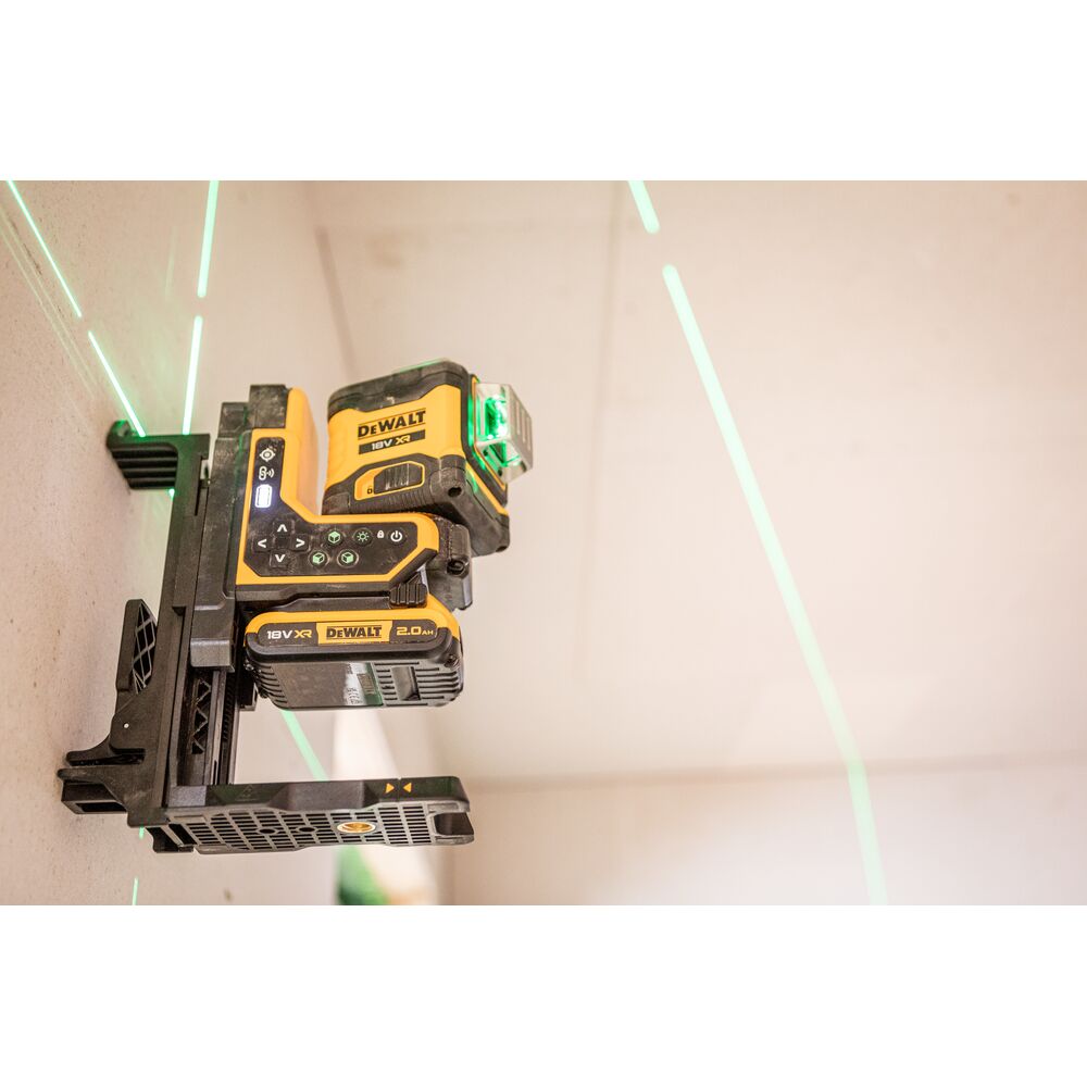 • 18V XR 3×360° мулти-линиски ласер со зелени зраци и далечинска контрола за фино позиционирање.
