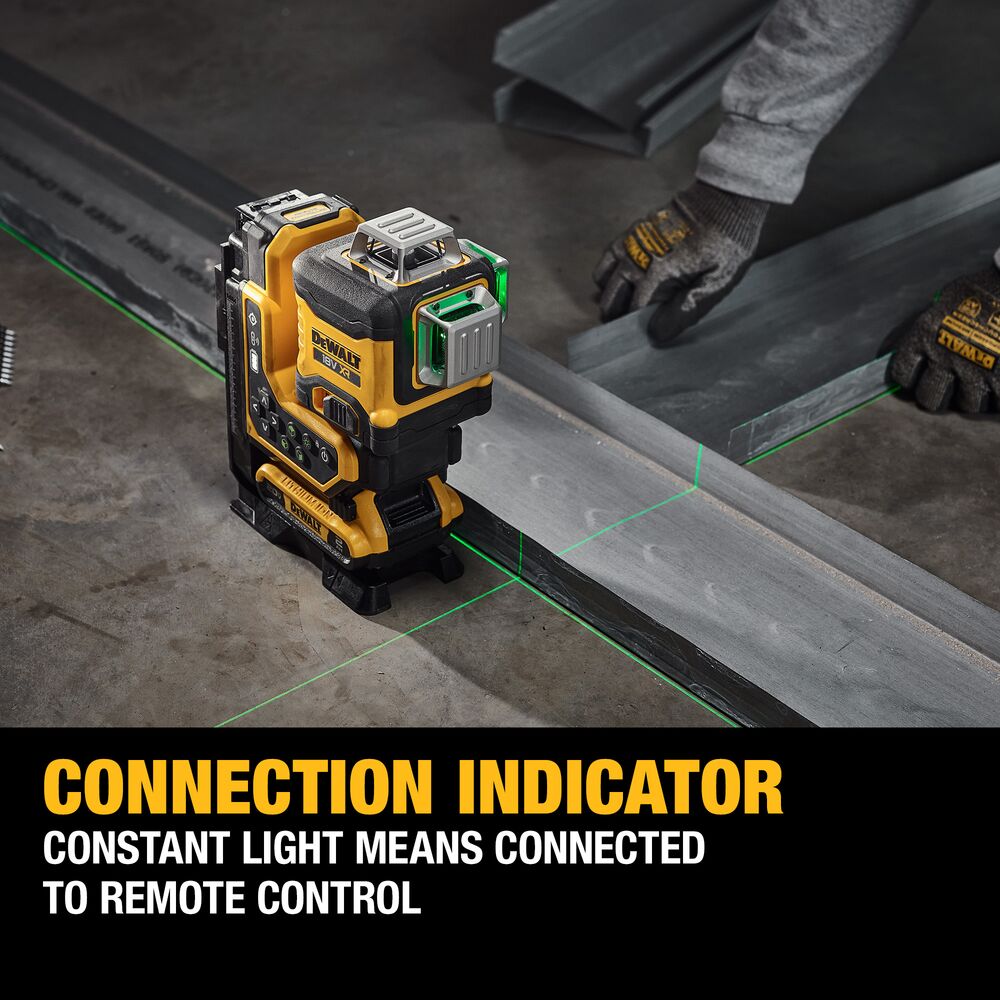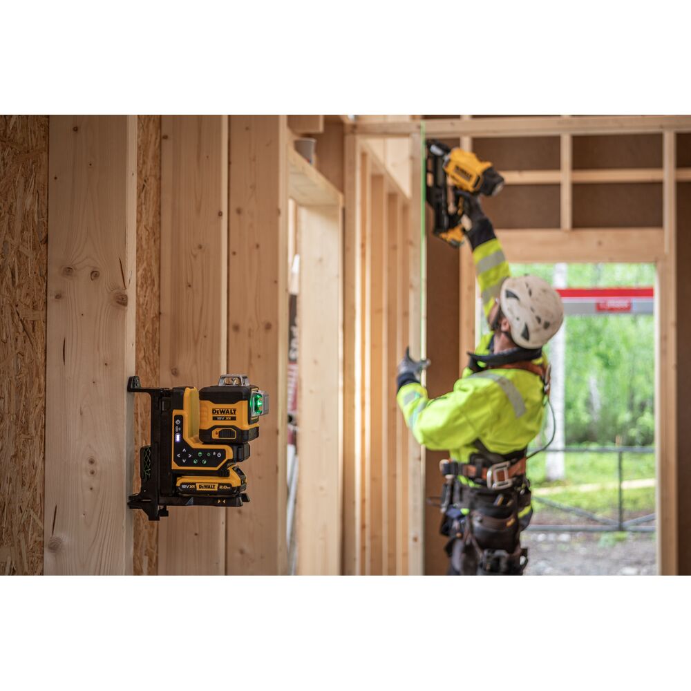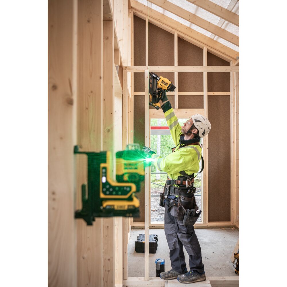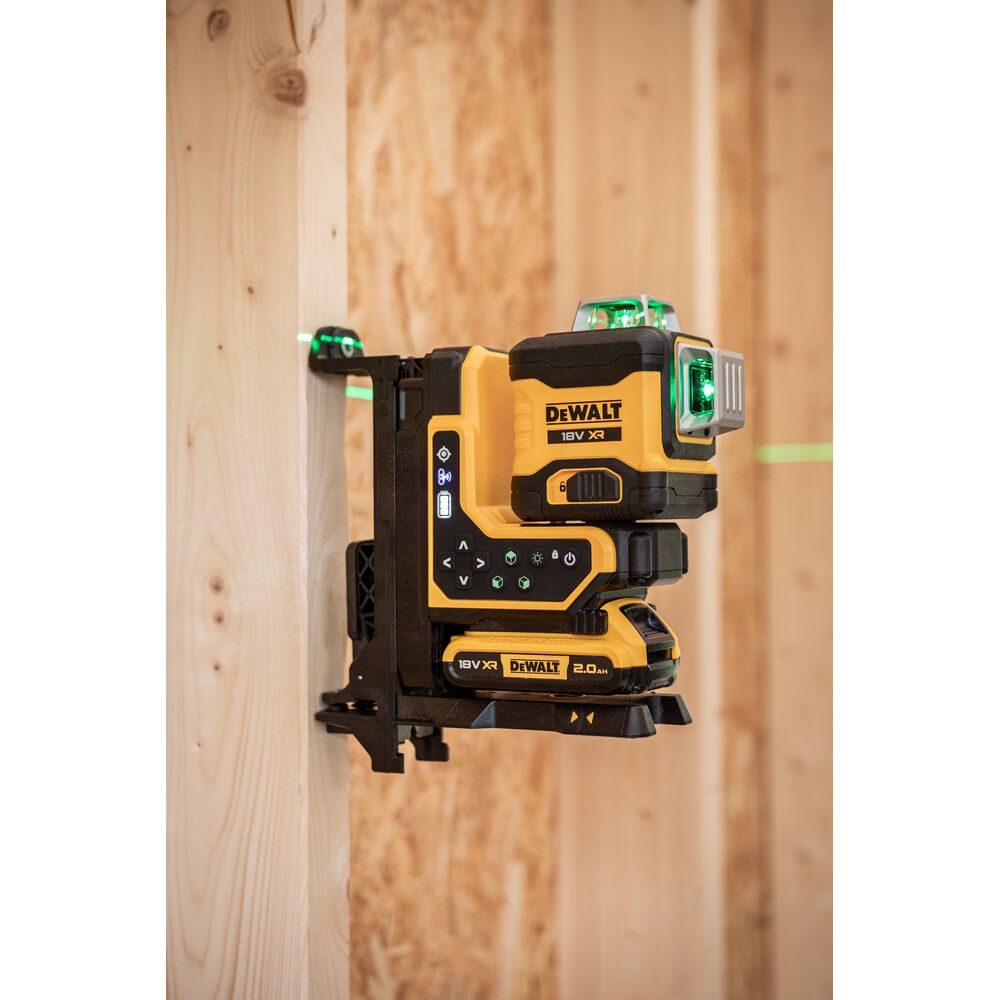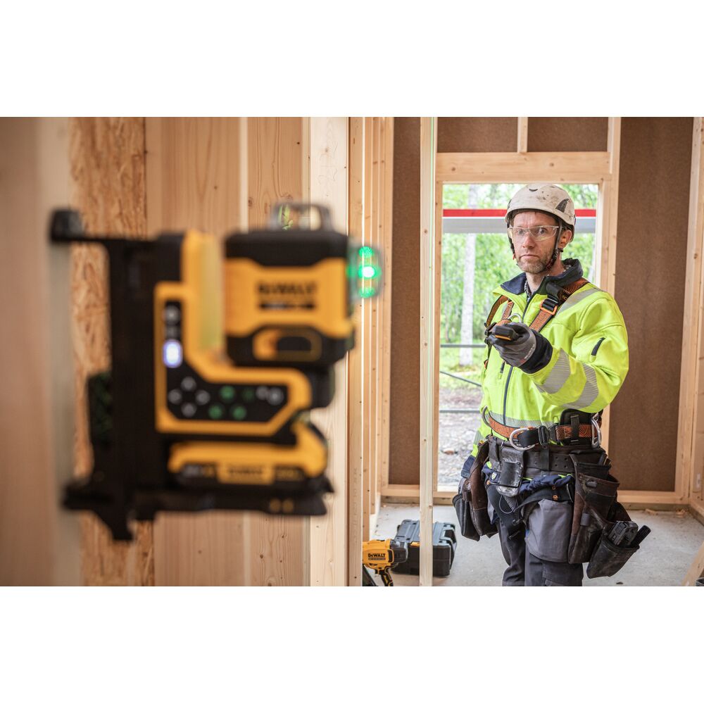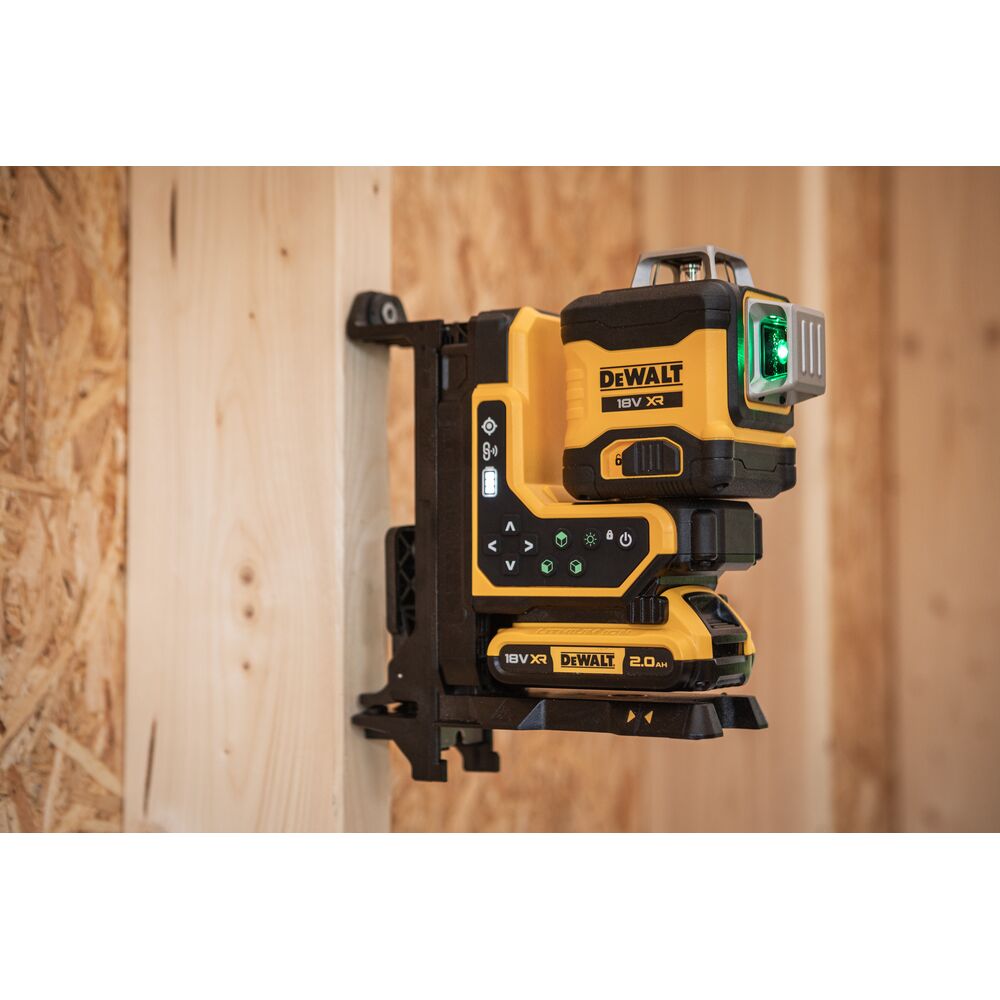 • 18V XR 3×360° мулти-линиски ласер со зелени зраци и далечинска контрола за фино позиционирање.