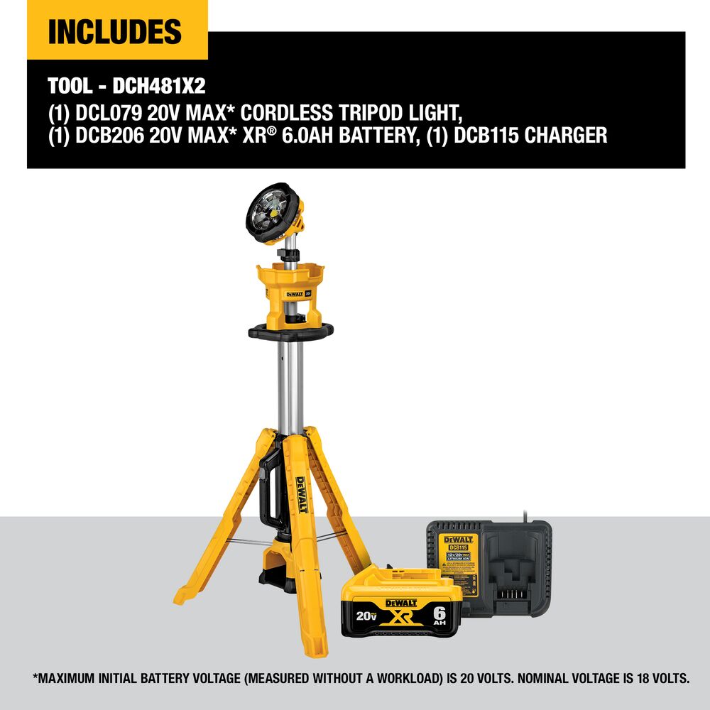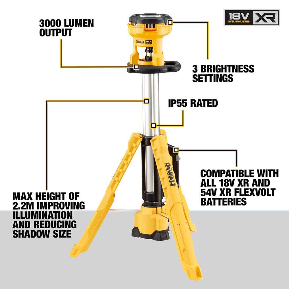 DCL079-XJ е 18V XR LED трипод работна светилка со подеслива висина од 1,0 m до 2,2 m