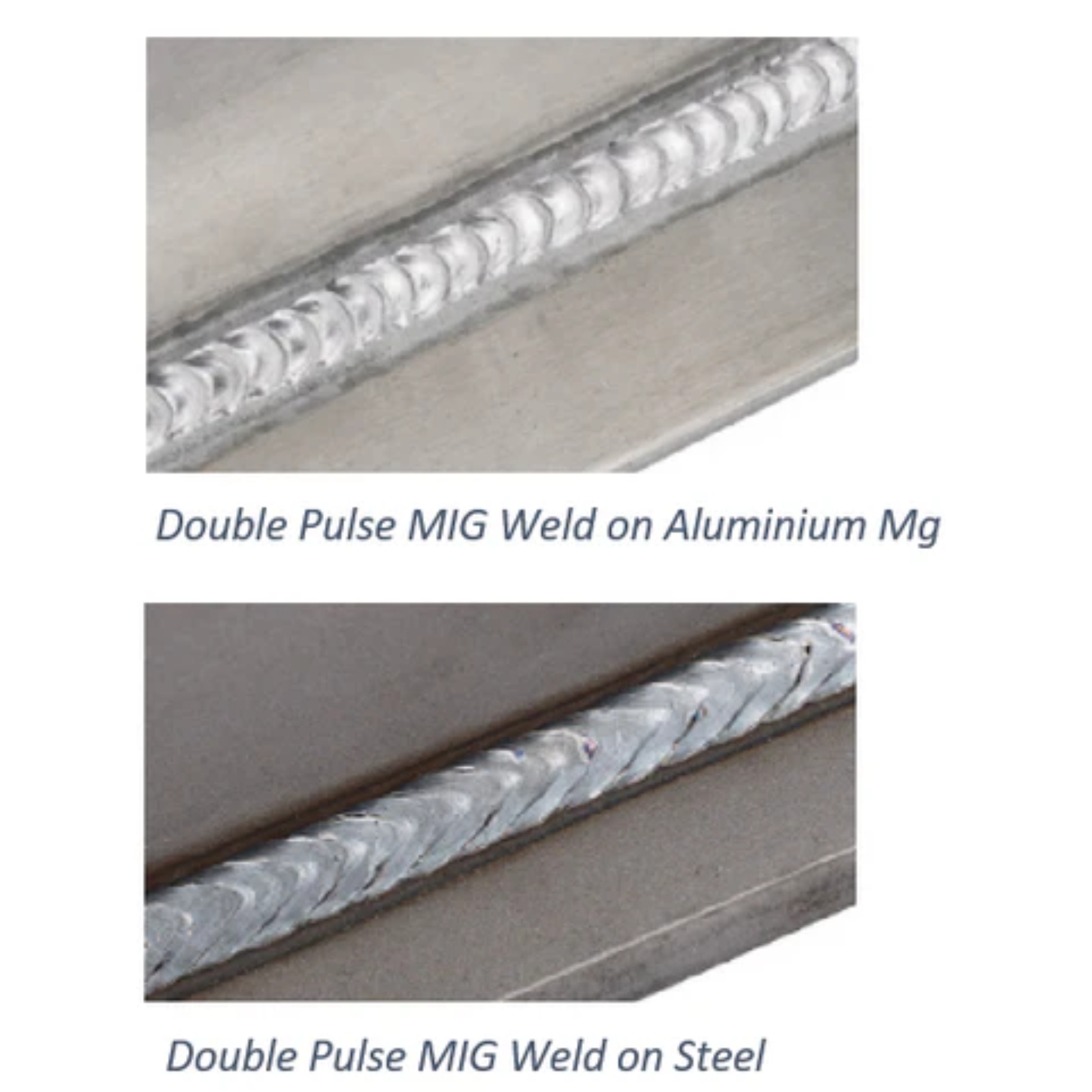 Double Pulse технологија: Овозможува прецизна контрола на топлината и подобар изглед на заварот, особено кај алуминиум и тенки лимови. Намалува деформации и прегревање.