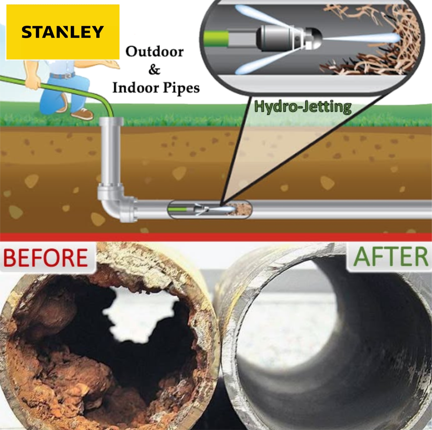 Со други зборови, Stanley 41958 Pipe Drain Hose Kit е практичен додаток кој ја проширува функционалноста на високопритисните перачи, овозможувајќи брзо и ефикасно чистење на одводи и цевки.